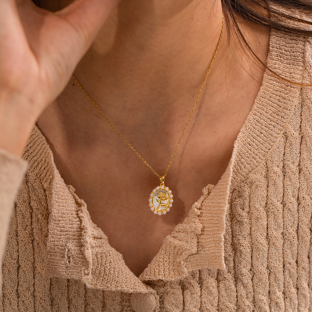 Collier Rose Dorée & Perles – Élégance Florale en Acier Inoxydable 18K